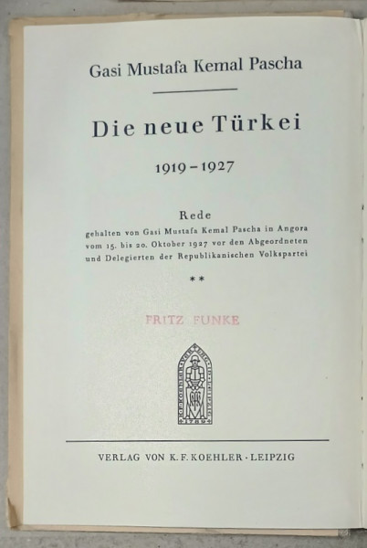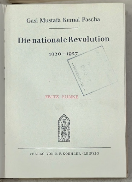 DIE NATIONALE REVOLUTION 1920 -1927 von KEMAL PASCHA , TEXT IN LIMBA GERMANA , 1928