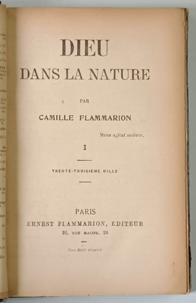 DIEU DANS LA NATURE par CAMILLE FLAMMARION , VOLUMELE I - II , CCA. 1900