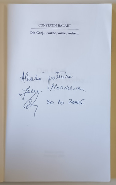 DIN GORJ ... VORBE , VORBE , VORBE ... de CONSTANTIN BALAET , 2006 *DEDICATIE
