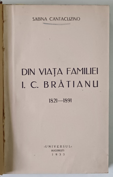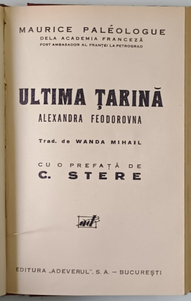 DIN VIATA FAMILIEI I. C. BRATIANU ( 1821 - 1891 ) de SABINA CANTACUZINO , 1933 / ULTIMA TARINA , ALEXANDRA FEODOROVNA de MAURICE PALEOLOGUE , 1933 *COLEGAT DE DOUA VOLUME
