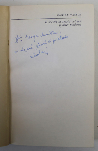 DISOCIERI IN TEORIA CULTURII SI ARTEI MODERNE de MARIAN VASILE , 1975 , DEDICATIE *