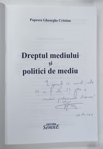 DREPTUL MEDIULUI SI POLITICI DE MEDIU de POPESCU GHEORGHE CRISTIAN , 2012, DEDICATIE *