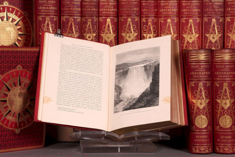 19 volume bogat ilustrate cu peste 3500 de harti, 1400 de gravuri in lemn, reprezentand peisaje, orase, monumente, etc.