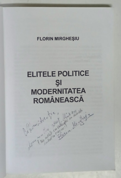 ELITELE POLITICE SI MODERNITATEA ROMANEASCA de FLORIN MIRGHESIU , 1998 *DEDICATIE