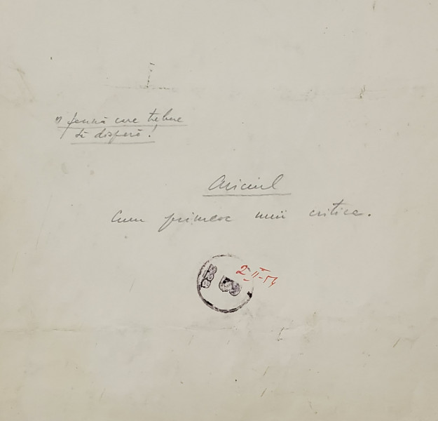 Pe verso contine insemnarile autorului " Cum primesc unii critica, 2-II-54"