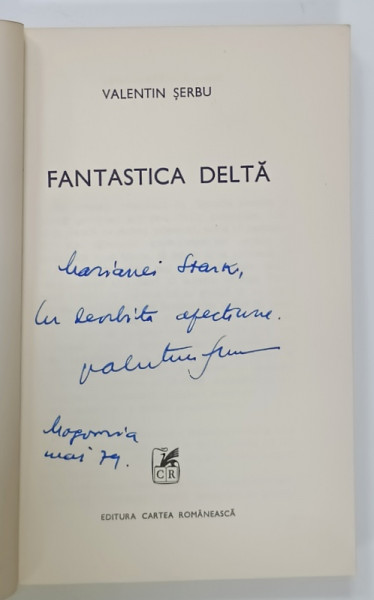 FANTASTICA DELTA de VALENTIN SERBU , 1976 , DEDICATIE *