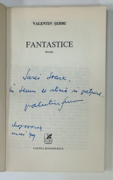 FANTASTICE , nuvele de VALENTIN SERBU , 1978 , DEDICATIE *