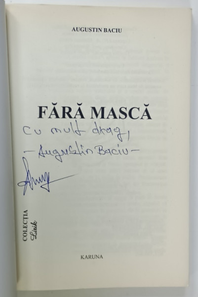 EDITURA KARUNA , 248 PAGINI , COPERTA BROSATA , CONTINE DEDICATIA AUTORULUI *