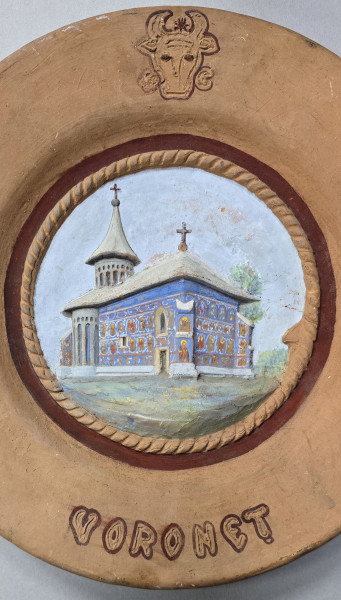 Farfurie din ceramica decorata cu Manastirea Voronet, Secol XX