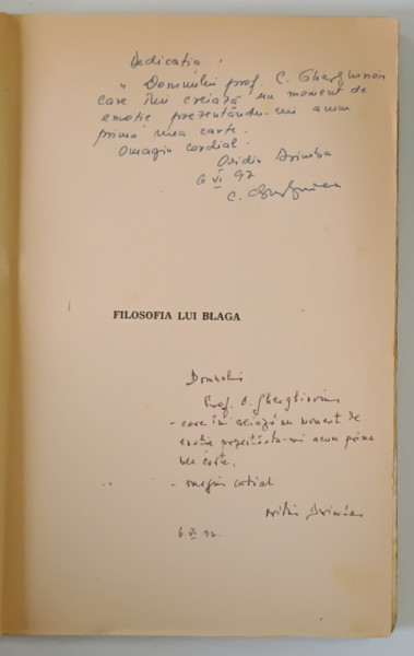 FILOSOFIA LUI BLAGA de OVIDIU DRIMBA , 1944 *DEDICATIE
