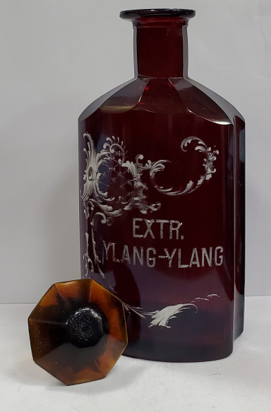 Flacon din sticla colorata in masa, pictata manual.