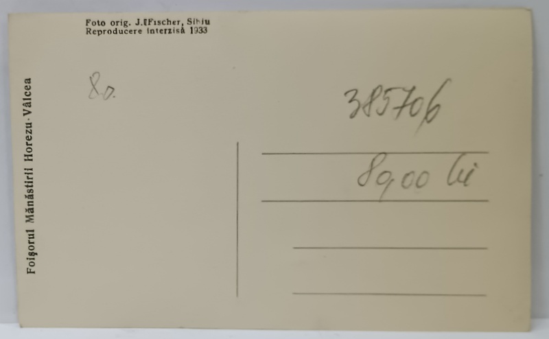 FOISORUL MANASTIRII HOREZU VALCEA , FOTO. J. FISCHER , SIBIU , FORMAT CARTE POSTALA , 1933