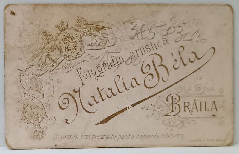 FOTOGRAF NATALIA BELA , BRAILA , DOI ELEVI CU PREMIILE SI CORONITA , IN STUDIO , FOTOGRAFIE C.D.V. , SFARSIT DE SECOL XIX