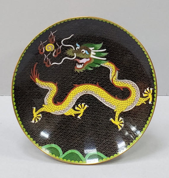 Tehnica: Metal decorat in tehnica Cloisonne cu dragon.