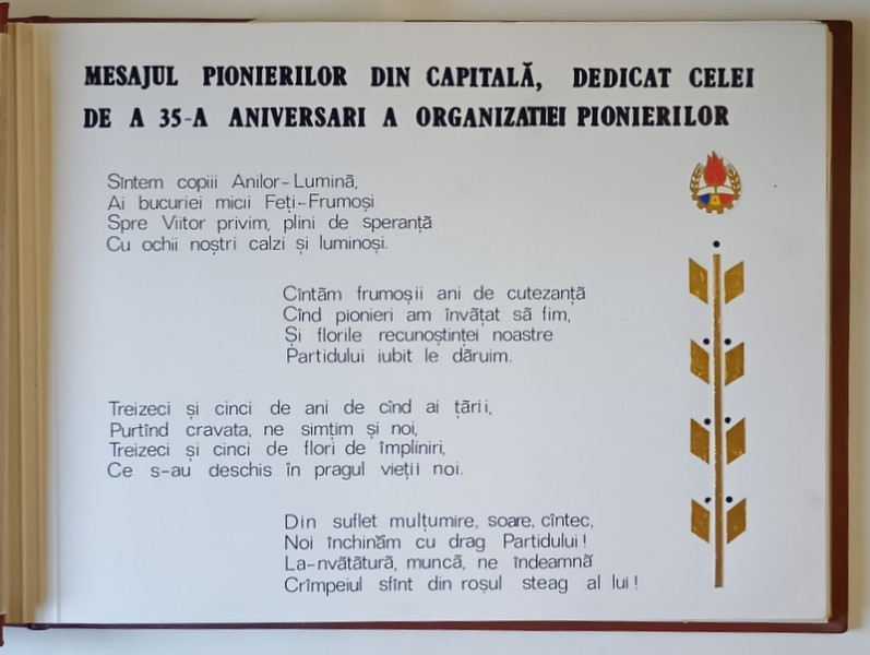 GENERATIA CELOR 35 DE ANI DE LA CREAREA ORGANIZATIEI PIONIERILOR , 1984 *LIPSA 3 FILE