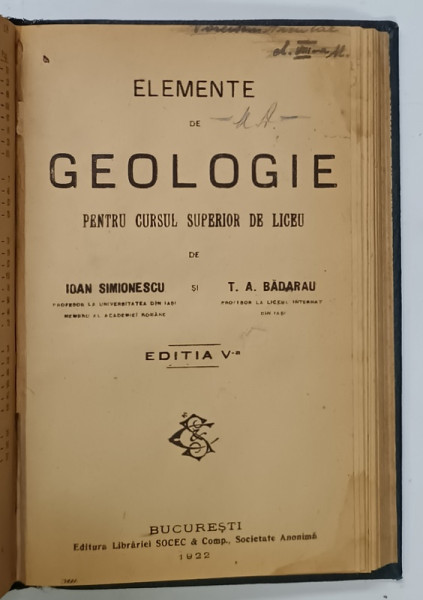 EDITURA LIBRARIEI SOCEC et CO. , CONTINE : 1. GEOLOGIE PENTRU SCOALELE SECUNDARE ..1919 - 129 PAGINI , 2. ELEMENTE DE SOCIOLOGIE - 1922 - 203 PAGINI , COLEGAT , LEGATURA CARTONATA