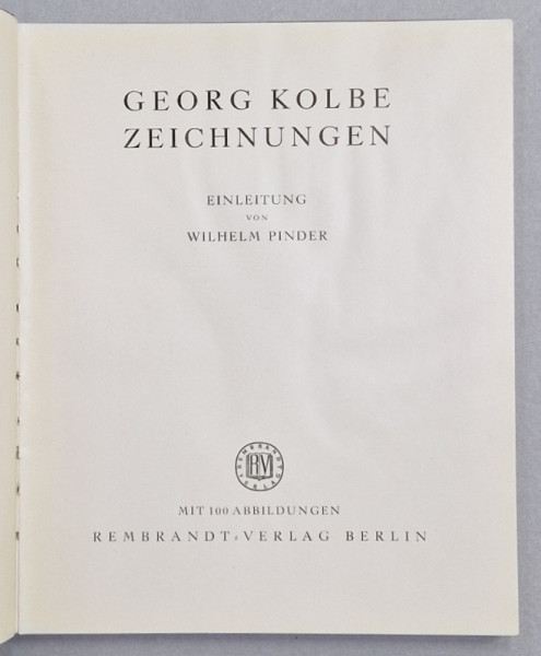 GEORG KOLBE , ZEICHNUNGEN (DESENE) , von WILHELM PINDER , 100 FOTOGRAFII , TEXT IN LIMBA GERMANA , 1942