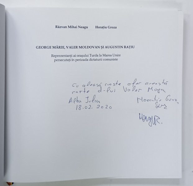 GEORGE MARIE , VALER MOLDOVAN si AUGUSTIN RATIU , REPREZENTATI AI ORASULUI TURDA LA MAREA UNIRE , PERSECUTATI IN PERIOADA DICTATURII COMUNISTE de RAZVAN MIHAI NEAGU si HORATIU GROZA , 2019 , DEDICATIE *