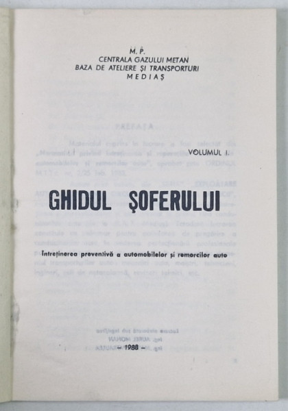 GHIDUL SOFERULUI , INTRETINEREA PREVENTIVA A AUTOMOBILELOR SI REMORCILOR AUTO , VOLUMUL I de AUREL MOHAN si MARIUS PATRAULEA , 1988