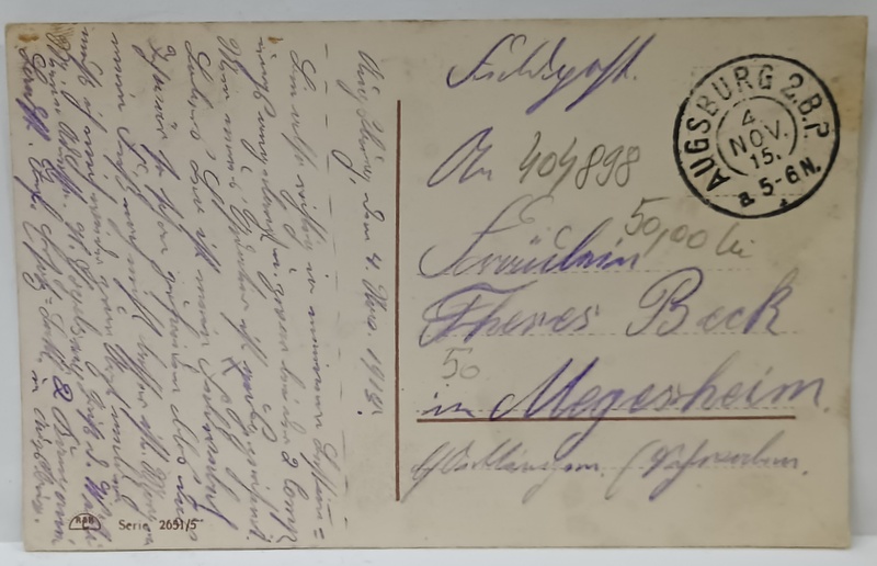 GOTT MIT UNS ! MONTAJ FOTOGRAFIC CU STEAGUL GERMANIEI SI SOLDAT SCRIIND IUBITEI DIN RZBOI , CARTE POSTALA ILUSTRATA , 1915