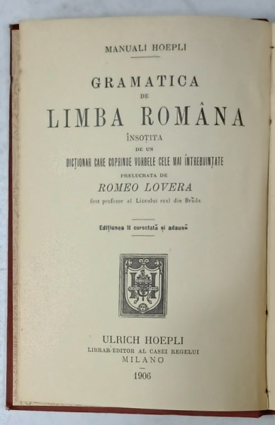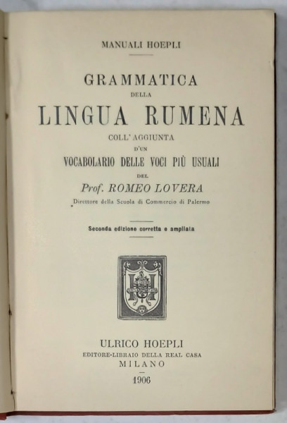 EDIZIONE ULRICO HOEPLI , 183 +64 PAGINI , LEGATURA ORIGINALA DE EDITURA