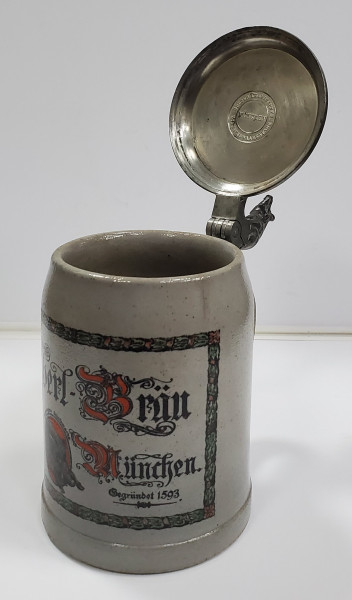 Halba din ceramica cu capac din zinc.Capaciatate: 500 ml