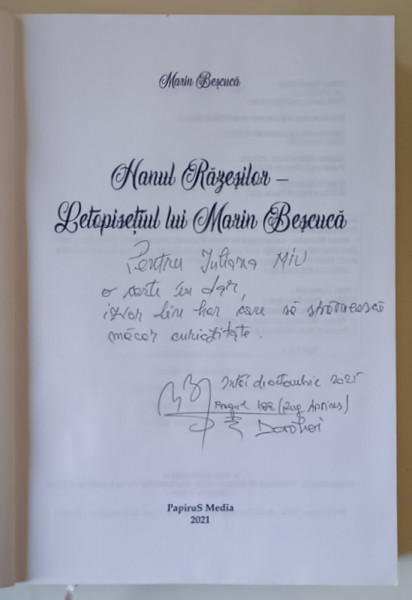 HANUL RAZESILOR , LETOPISETUL LUI MARIN BESCUCA , de MARIN BESCUCA , 2021 *DEDICATIE