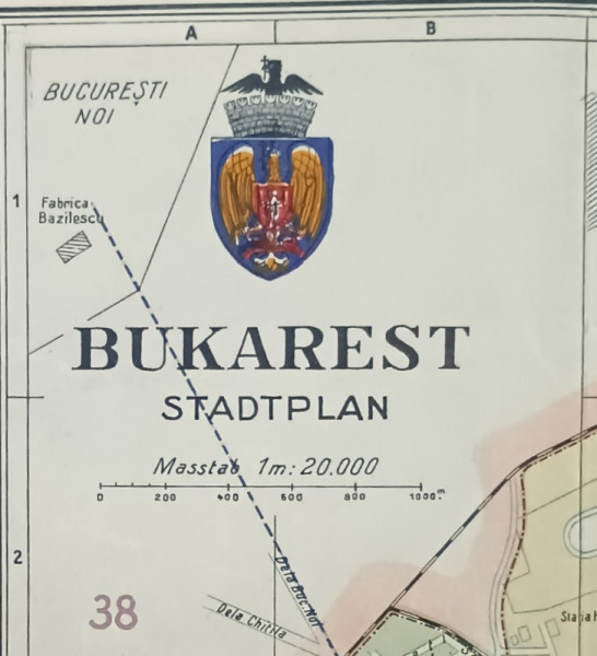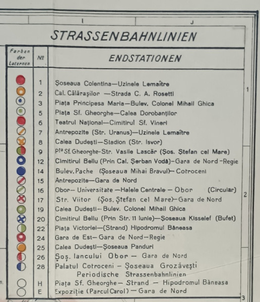 HARTA ORASULUI BUCURESTI , CU IMPARTIREA PE SECTOARE SI TRASEELE MIJLOACELOR DE TRANSPORT , POLICROMA, 1932