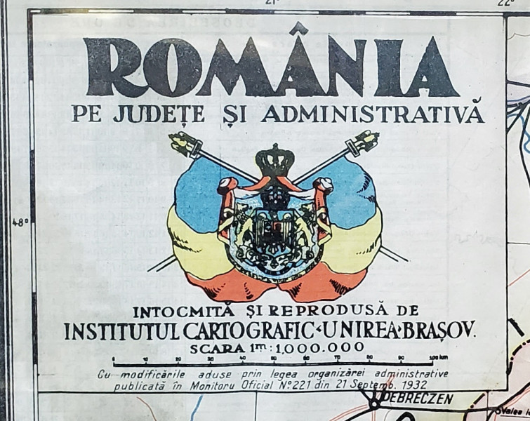 Harta Romaniei Mari pe Judete si Administrativa, 1932