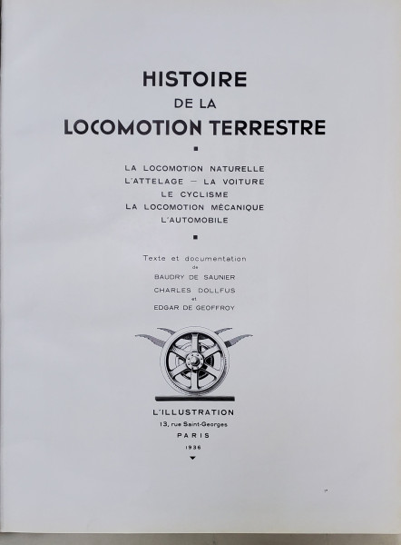 HISTOIRE DE LA LOCOMOTION TERRESTRE , LA VOITURE , LE CYCLE , L 'ÁUTOMOBILE par BAUDRY DE SAUNIER ...EDGAR DE GEOFFROY , 1936