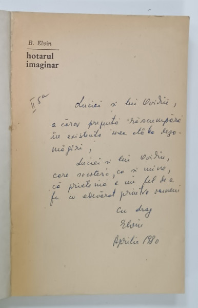 HOTARUL IMAGINAR , roman de B. ELVIN , 1980 , DEDICATIE *
