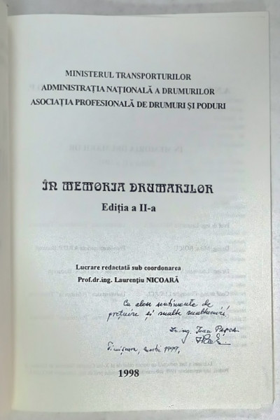 IN MEMORIA DRUMARILOR , 1999 , DEDICATIE *