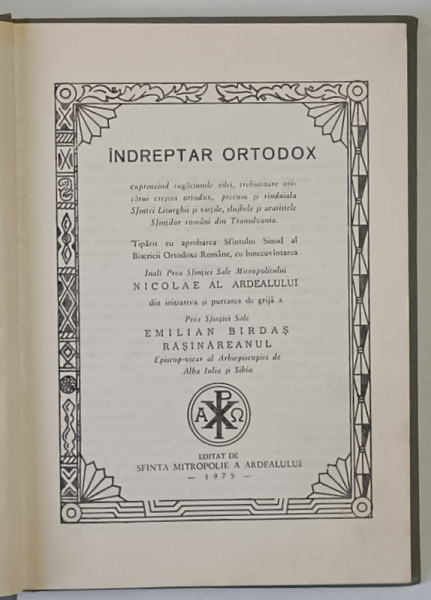 INDREPTAR ORTODOX , CUPRINZAND RUGACIUNILE ZILEI , TREBUITOARE ORICARUI CRESTIN ORTODOX , PRECUM SI RANDUIALA SFINTEI LITURGHII SI VIETILE , SLUJBELE SI ACATISTELE SFINTILOR ROMANI DIN TRANSILVANIA , 1975