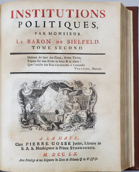 INSTITUTIONS POLITIQUES par MONSIEUR LE BARON DE de BIELEFELD, 2 VOL. - HAGA, 1760