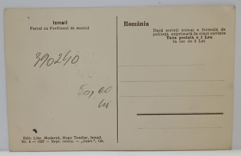 ISMAIL , PARCUL CU PAVILIONUL DE MUZICA , 1937