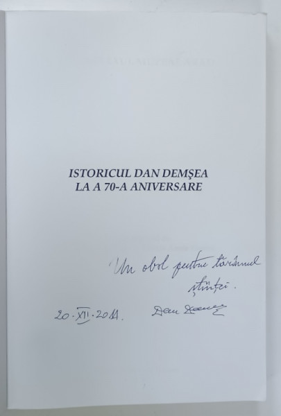 ISTORICUL DAN DEMSEA LA A 70 -A ANIVERSARE , editie ingrijita de PETER HUGEL si FELICIA ANETA OARCEA , 2011 , DEDICATIE *