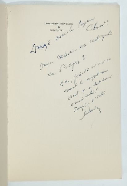 IUBESTE MEREU , ASA - MI PORUNCESTE SUFLETUL MEU de CONSTANTIN C. MIHAILESCU , versuri , 1971, DEDICATIE *
