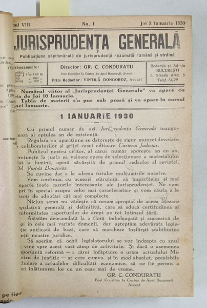 JURISPRUDENTA GENERALA , ANUL VIII , NUMERELE I1 - 38 , 1930