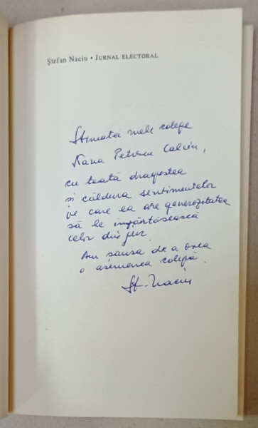 JURNAL ELECTORAL de STEFAN NACIU , 1996, DEDICATIE *