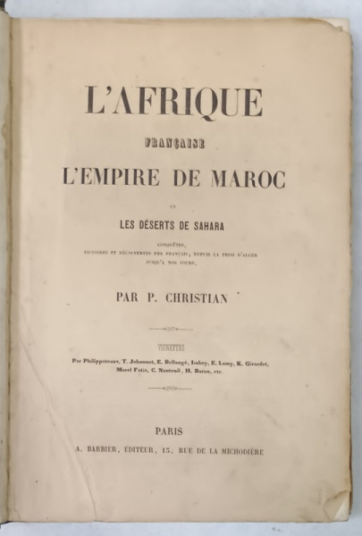 L 'AFRIQUE FRANCAISE , L ' EMPIRE DE MAROC et LES DESERTS DE SAHARA par P. CHRISTIAN , EDITIE DE SFARSIT DE SECOL XIX