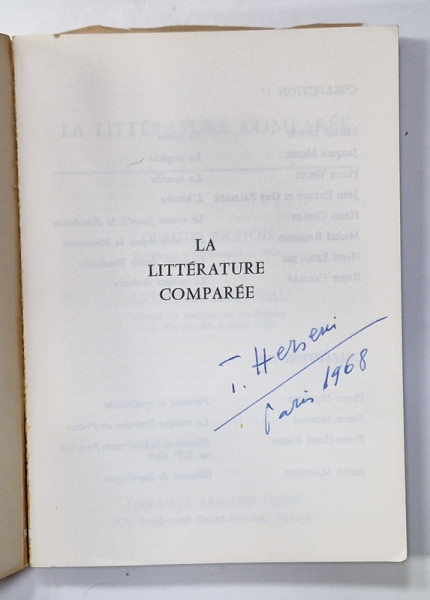 LA LITTERATURE COMPAREE par CL. PICHOIS et A.M. ROUSSEAU , PREZINTA INSEMNARI SI SUBLINIERI * , 1967 , EXEMPLAR SEMNAT DE TRAIAN HERSENI *