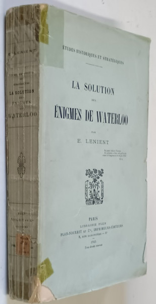 LA SOLUTION DES ENIGMES DE WATERLOO par E. LENIENT , 1915