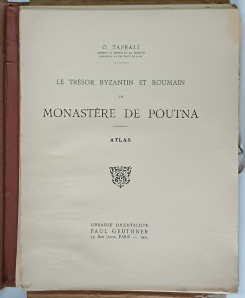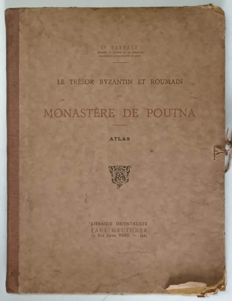 LE TRESOR BYZANTIN ET ROUMAIN DU MONASTERE DE POUTNA par O . TAFRALI , DEUX VOLUMES : ATLAS et TEXTE , 1925, CONTINE 60 PLANSE LIPSA PLANSELE 11 , 12 , 13