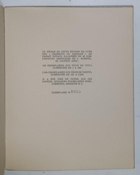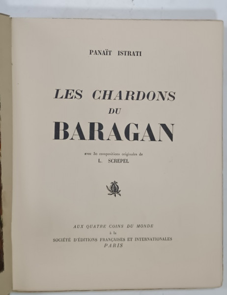 LES CHARDONS DU BARAGAN par PANAIT ISTRATI , avec 30 compositions originales de L. SCREPEL , 1928 , EXEMPLAR NUMEROTAT , STARE FOARTE BUNA DE CONSERVARE *