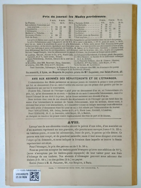 LES MODES PARISIENNES ILLUSTREES , JOURNAL DE LA BONNE COMPAGNIE , NO. 1486 , 1872