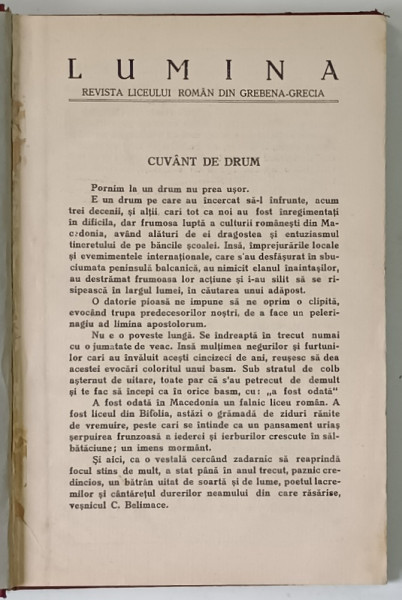 LUMINA , REVISTA LICEULUI ROMAN DIN GREBENA ( GRECIA ) , COLEGAT DE 4 NUMERE , 1936 *EDITIE INTERBELICA