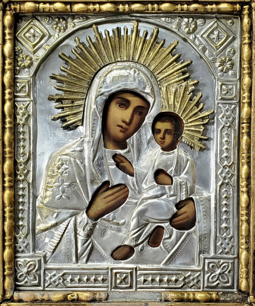 Tehnica: Ulei / Lemn si ferecatura argintata in chivot original.