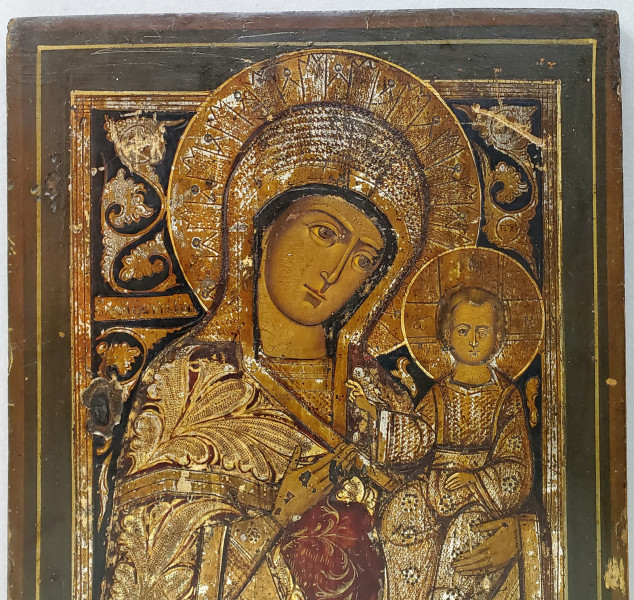 Tehnica: Tempera si foita din argint aurit / Lemn