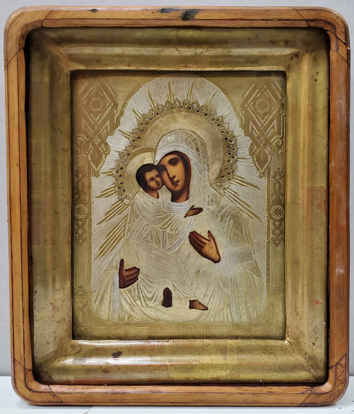 Tehnica: Ulei / Lemn, ferecatura si caseta originala din lemn