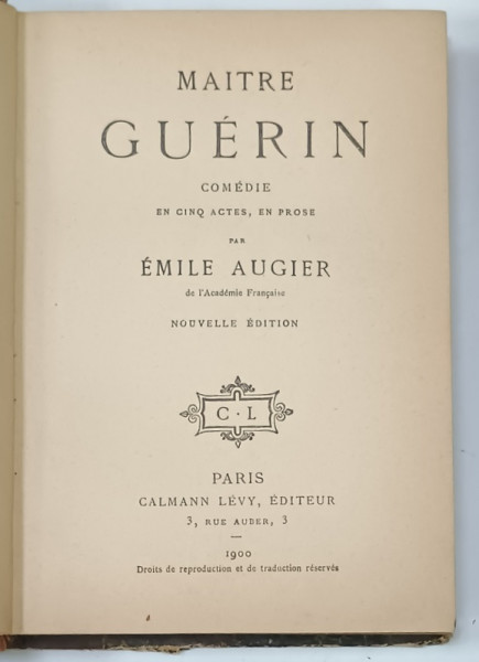 MAITRE GUERIN , COMEDIE EN CINQ ACTES , EN PROSE / LE GENDRE DE M. POIRIER par EMILE AUGIER , COLEGAT 1900